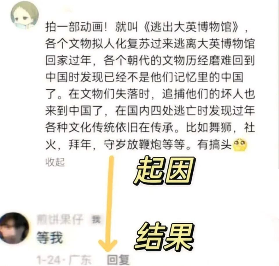 而它的拍摄起因,是今年初有网友提议能不能拍一部片,文物拟人,逃出大英博物馆。