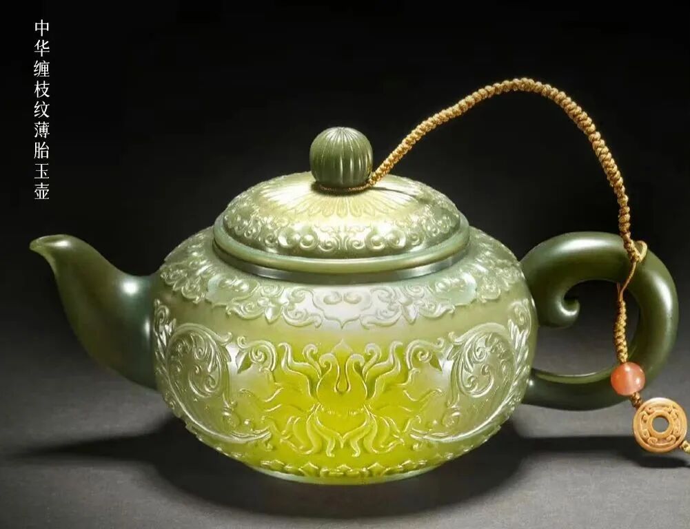 中华缠枝纹薄胎玉壶,由非遗大师于2011年创作,2017年被大英博物馆购藏。