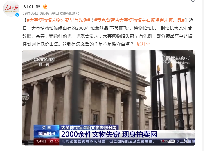 8月中旬,大英博物馆2000余件文物失窃事件引发世界哗然。