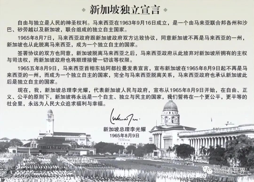 新加坡古称淡马锡,8世纪属室利佛逝王朝。18-19世纪是成为柔佛王国的一部分。1824年,新加坡沦为英国殖民地,成为大英帝国在远东的转口贸易商埠和军事基地。1963年,马来亚与新加坡、沙巴、沙捞越等四个实体组建马来西亚联邦。1965年,马来西亚把新加坡“开除”,新加坡被迫成为一个主权独立的国家,首任总理李光耀在发表全国演讲时痛哭流涕。