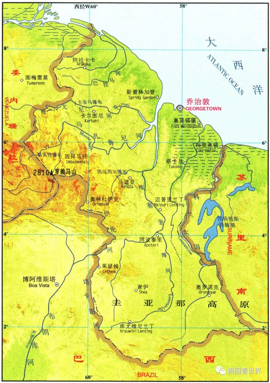 近日,委内瑞拉通过合并埃赛奎博河西岸地区(Guayana Esequiba)的全民公投,并把该地区划入本国地图,设立圭亚那·埃塞奎博州。埃赛奎博河西岸地区占圭亚那全国领土的62%,圭亚那这是要被灭国吗?圭亚那是一个什么样的国家?本文从10个方面做概要介绍。读完此文,相信您会对圭亚那有一个基本的了解。