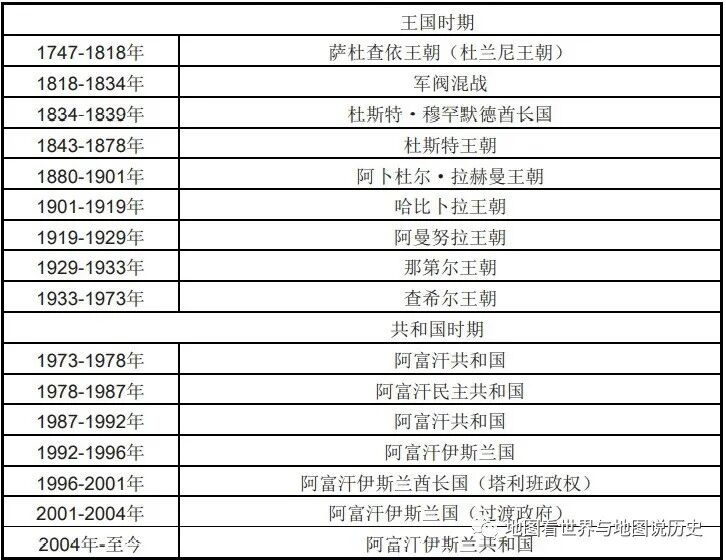 阿富汗自古就是重要的贸易点和游牧民族迁居点,历史上长期处于重要帝国边缘,充满战争和社会动荡。公元前6世纪至18世纪中叶,阿富汗先后被波斯人、希腊人、印度人、阿拉伯人、蒙古人等统治。19世纪后,英国为了与俄罗斯帝国争夺中亚并控制印度的西北边境,先后发动了两次阿富汗战争,后阿富汗成为英属印度和俄罗斯帝国间的缓冲国。1919年,阿富汗摆脱英国的控制获得独立。1973年,成立阿富汗共和国。1997年10月改国名为阿富汗伊斯兰酋长国。2004年1月,阿富汗颁布新宪法,定国名为阿富汗伊斯兰共和国。