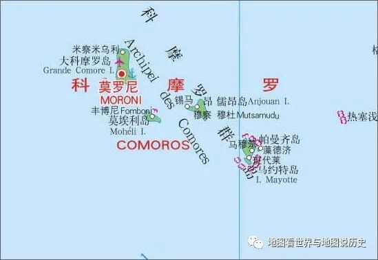 科摩罗被称月亮之国、香料之国,是非洲一个位于印度洋上的岛国。科摩罗最早为阿拉伯人和马达加斯加人的移居地,9世纪至15世纪长期由阿拉伯苏丹统治。1912年科摩罗四岛正式沦为法国殖民地。1975年7月6日,科摩罗共和国成立。1978年10月22日,改国名为科摩罗伊斯兰联邦共和国(The Federal Islamic Republic of the Comoros)。2001年科摩罗通过新宪法草案,成立科摩罗联盟(The Union of Comoros)。