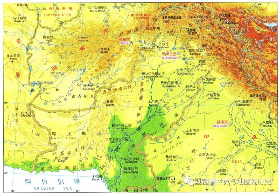巴基斯坦全称巴基斯坦伊斯兰共和国(The Islamic Republic of Pakistan),位于南亚次大陆西北部,南濒阿拉伯海,东、北、西三面分别与印度、中国、阿富汗和伊朗为邻。全境五分之三为山区和丘陵,南部沿海一带为沙漠,向北伸展则是连绵的高原牧场和肥田沃土。喜马拉雅山、喀喇昆仑山和兴都库什山这三条世界上有名的大山脉在巴基斯坦西北部汇聚,形成了奇特的景观。全国最高峰乔戈里峰(海拔8611米)。海岸线长840公里。国土面积88万平方公里(包括巴控克什米尔地区,约新疆的一半大小)。人口2.05亿(2019年),是世界上人口第六多的国家,旁遮普族占63%;95%的居民信奉伊斯兰教,是世界第二多人口的伊斯兰教国家,90%为逊尼派。