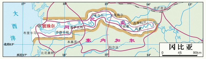 冈比亚位于非洲西部,是非洲大陆面积最小的国家。15-16世纪,葡萄牙人曾入侵。此后,英国和法国殖民者也相继侵入。1965年2月18日,冈比亚正式独立。1970年4月24日成立共和国。2015年12月,冈比亚时任总统叶海亚·贾梅(Yahya Jammeh)宣布,为了彻底地和过往的殖民地历史划清界线,将国家名称改为冈比亚伊斯兰共和国(The Islamic Republic of Gambia),并称这“符合国家的宗教信仰和价值观”。2017年,冈比亚新总统阿达马·巴罗(Adama Barrow)又将国名改为了冈比亚共和国(The Republic of Gambia)。