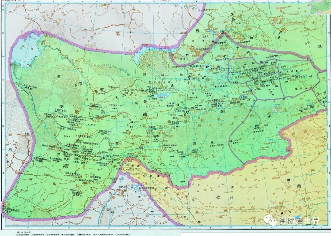 中亚位于亚欧大陆的核心地带,被誉为世界的中心、由于地处沟通东亚、西亚、南亚、北亚的交通要道,自古以来就成为兵家必争之地。不管是东方文明还是西方文明,都以征服中亚地区作为对外扩张的重要通道。历史上大多数时间里,中亚是游牧民族的迁徙放牧之地,游牧民族交融杂居,成为多民族的熔炉。汉朝时期,哈萨克斯坦东部、吉尔吉斯斯坦北部一度属于西域都护府;唐朝鼎盛时期,中亚五国大部分都属于安西都护府,安西四镇之一的碎叶就是唐朝诗人李白的出生地(今吉尔吉斯斯坦的托克马克)。