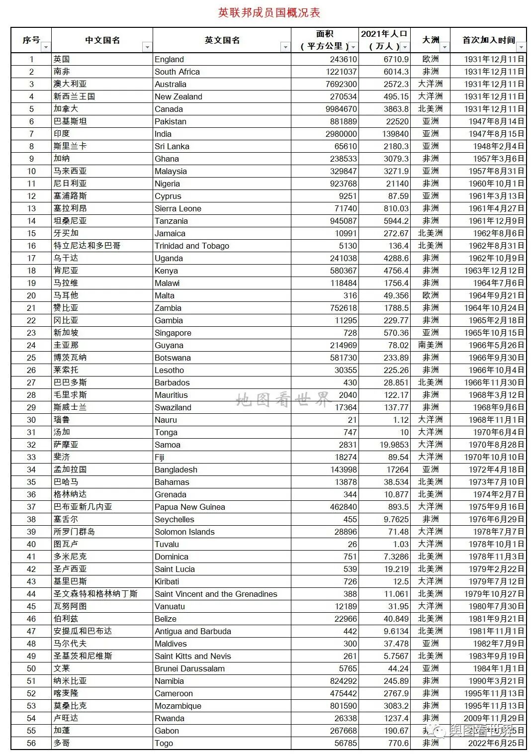 英联邦 (Commonwealth of Nations),是一个国际组织,成员大多为前英国殖民地或者保护国。各个主权国自愿加入英联邦,也可随时退出英联邦。南非、巴基斯坦、斐济、冈比亚、马尔代夫都曾经退出英联邦,后又加入。