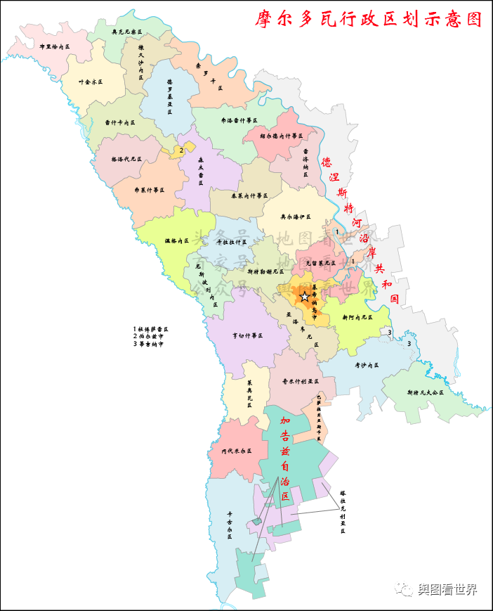摩尔多瓦没什么存在感,一是因为摩尔多瓦国家小、人口少,处于两个大国的夹缝中,形势比较像中俄两国中间的蒙古国。二是因为体育运动不强,三大球和三小球都比较弱,也没有什么明星。三是因为摩尔多瓦是一个拼凑出来的国家,没有自己的独特历史。摩尔多瓦国土由位于德涅斯特河右岸的比萨拉比亚一部分和左岸的摩尔达维亚(这里特指1918-1940年乌克兰境内的摩尔达维亚自治共和国,也就是德左地区)组成,比萨拉比亚历史上是罗马尼亚的一部分,德左地区则长期被沙俄所占领。摩尔多瓦的名称取自摩尔达维亚的罗马尼亚语发音,但只拥有摩尔达维亚公国的比萨拉比亚的一部分,摩尔达维亚公国的其余部分则分属罗马尼亚、乌克兰。