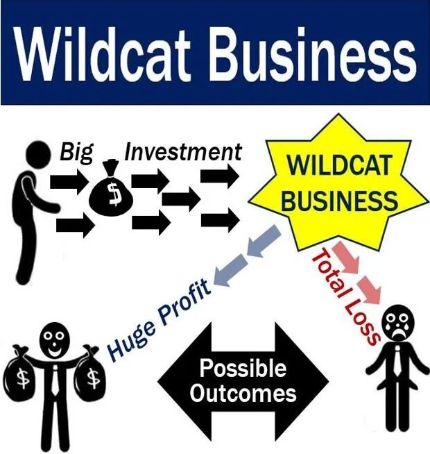 A wildcat business is a commercial venture which has a high probability of great profits or total losses.