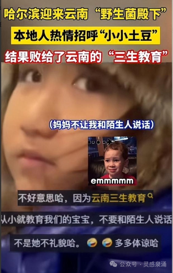 沿着这片冰雪的土地,先是一群广西“沙糖桔殿下”闯入哈尔滨,引起了轰动,接着云南“小野菌子”也踏上了这片热土,再度掀起一阵云看娃狂潮。