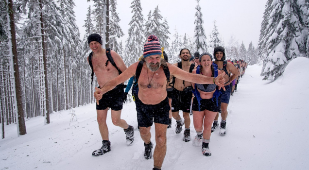 图注:Wim Hof和训练班的成员爬雪山,类似的远征活动会一年两次