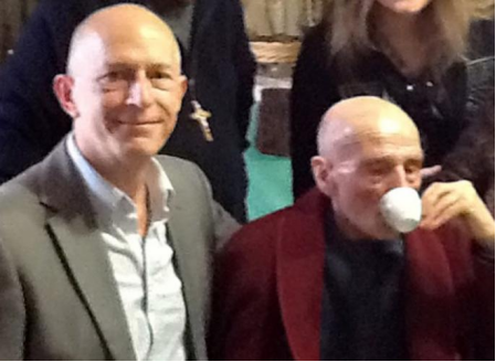 图注:James Clement和百岁老人Guiseppe一起喝咖啡