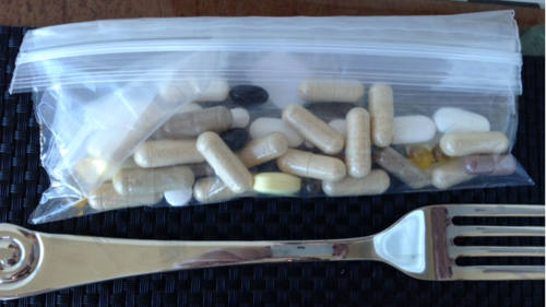 图注:库兹韦尔现在每天服用的补剂已经减少到100种左右,图为他每日早餐前服用的补剂
