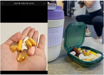 她按着自己的理解,服用一些膳食补充剂:4倍剂量高浓度Gaba和PQQ,想让自己能正常睡着;维生素B和复合维生素,弥补单一膳食模式造成的营养不足;鱼油帮助降低炎症。因为慢性疼痛,偶尔还需要饮用一些布洛芬冲剂。