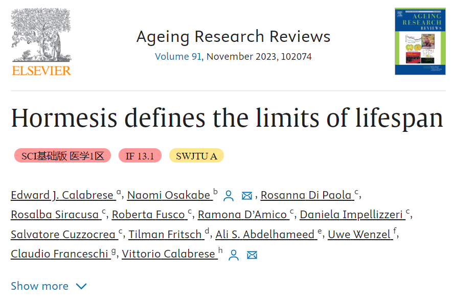 [1]Calabrese, E.J., et al., Hormesis Defines The Limits Of Lifespan. Ageing Research Reviews, 2023: p. 102074.