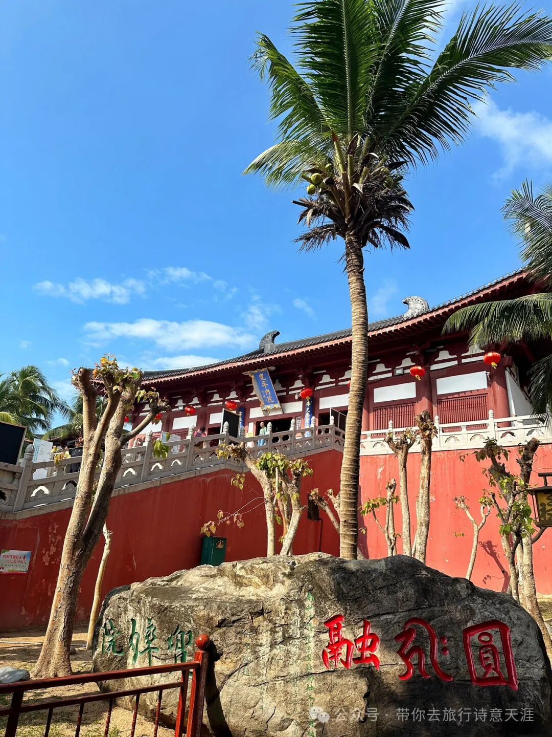 题诗《南山海上观音》:一体三尊佑海南,手持法器度人间。眼前多少焚香客,几个皈心结善缘。南山寺,面向南海。兜率内院,即天王殿。
