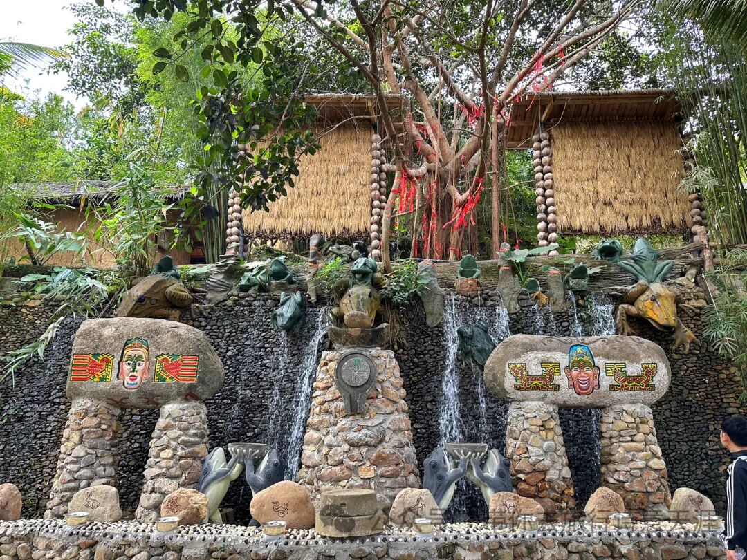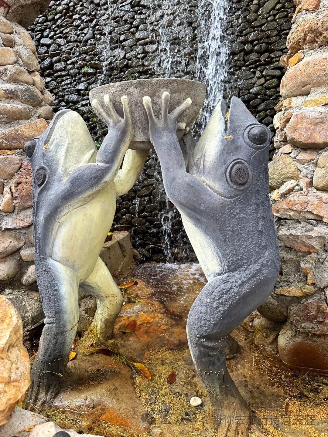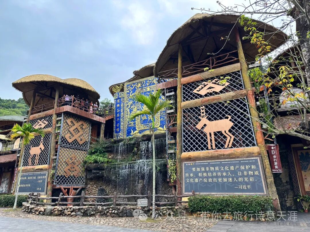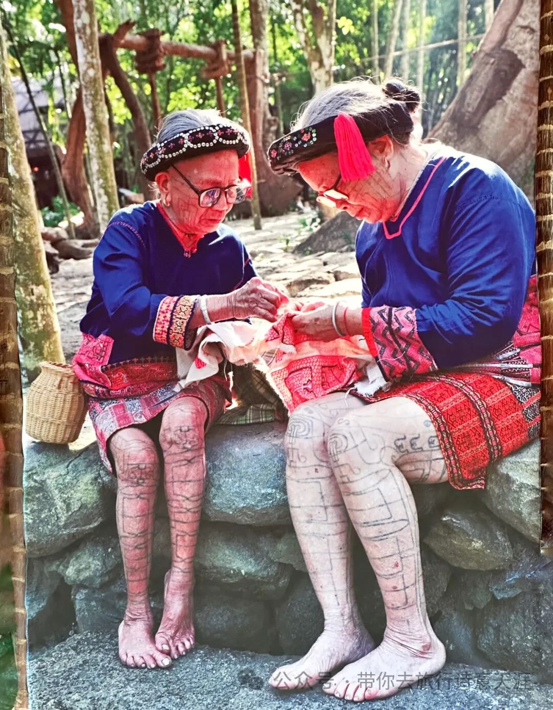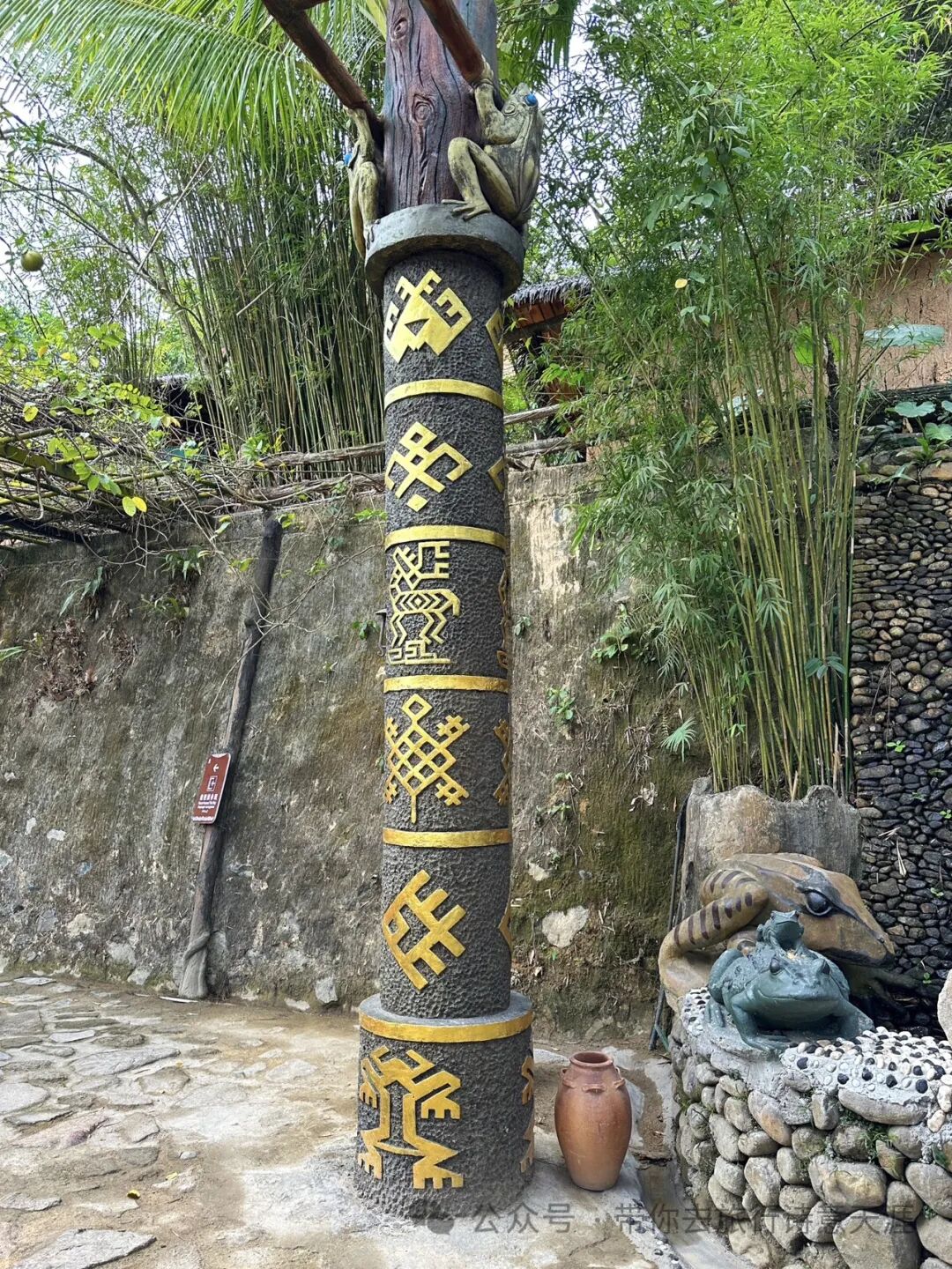 题小诗一首《海南槟榔谷》:牛角青蛙大力神,阿婆自古好纹身。漂洋过海云帆尽,梦断船屋付后人。