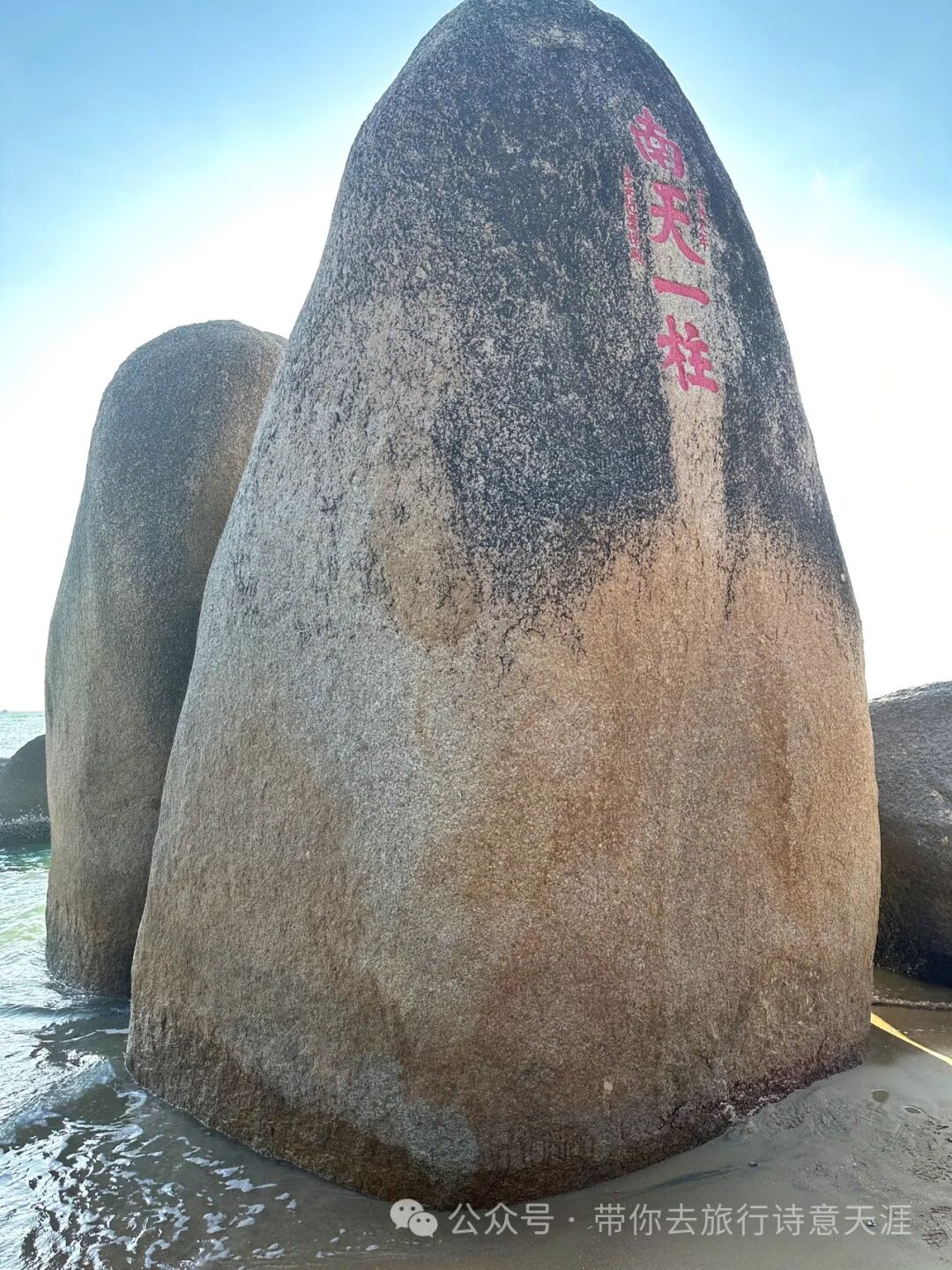“南天一柱”石,清宣统元年(1909年),崖州知州范云梯题“南天一柱”。南天一柱石,圆锥形,高约7米,侧面看像“双桅帆”。中国人民银行发行的1980年、1990年版第四套贰圆人民币,都采用了“南天一柱”石作为背面图案。