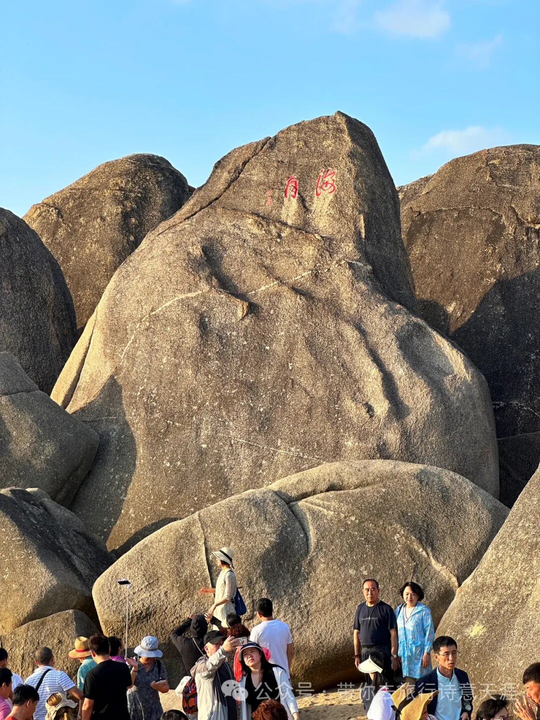 题小诗一首《海南天涯海角》:椰风海韵踏白沙,石刻争奇逐浪花。万里江山谁作主,人间何处是天涯?