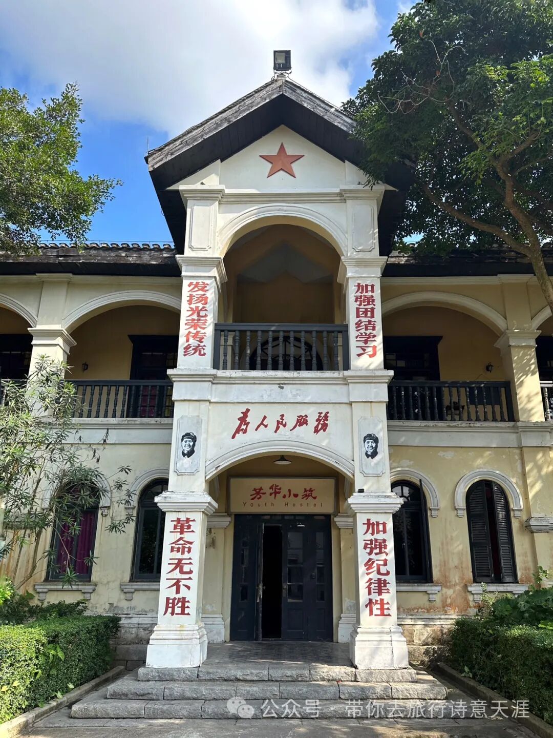 芳华景区,2017年贺岁电影《芳华》电影实景区,电影中80%的场景取自这里。景区内设置影壁墙、篮球场、排练厅和练功房、泳池、更衣室、道具间、军需库等。场景准确还原年代背景,从建筑设计到物品陈设,以及随处可见的红色标语,都真实再现上世纪70年代的特色。