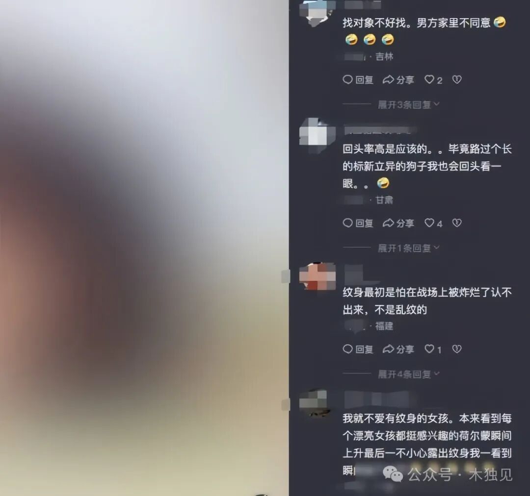 小敏从小就对纹身充满着独特的热爱,她视之为一门艺术,是对生活热情和自我表达的一种方式。因此,成年后她选择了纹身这一独特的艺术形式,将自己的身体打造成一幅独特的画布,留下了无数的图案和记忆。然而,纹身不仅给她带来了自由与独立,也成为了她感情征途上的一道坎。