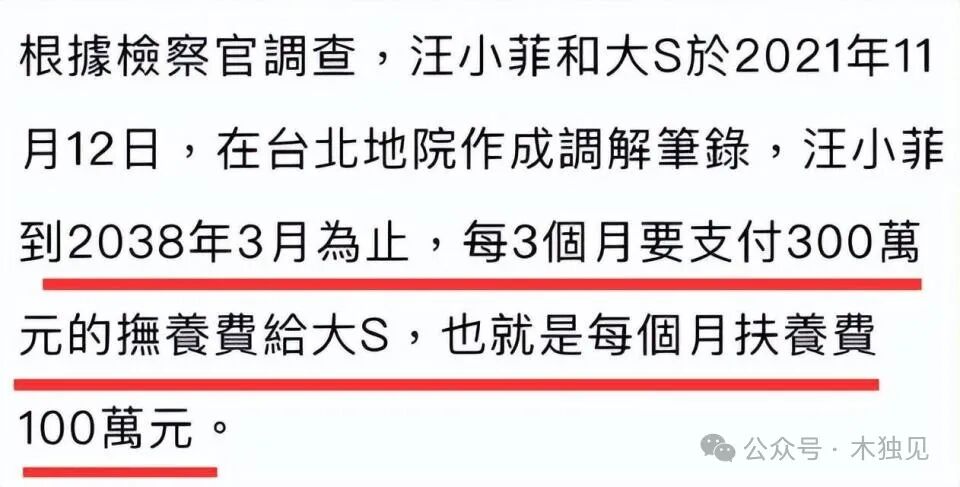 尽管大S和具俊晔的婚姻生活十分低调,但与前夫汪小菲的纠葛却一直备受关注。最近,两人再次因离婚协议细节闹上热搜。据台媒爆料,汪小菲在离婚后两年内支付了大S一千多万元,每个月还要支付23万元的抚养费,直到2038年为止。除此之外,他还要为大S支付赡养费。