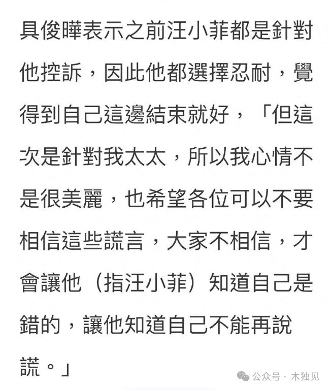 此前,具俊晔在接受采访时曾公开维护大S,并警告汪小菲不要再说谎,希望大家不要相信他。然而,对于这三人之间的纠葛,确实很难简单地评判谁对谁错。