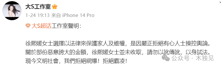 然而,对于台媒的爆料,大S方坚决表示这是不实报道。他们声称,大S并没有收取汪小菲所提到的那么多抚养费。尽管如此,大S的工作室并没有提供任何证据来支持他们的说法。这让网友们感到困惑,不知道该相信哪一方的说法。