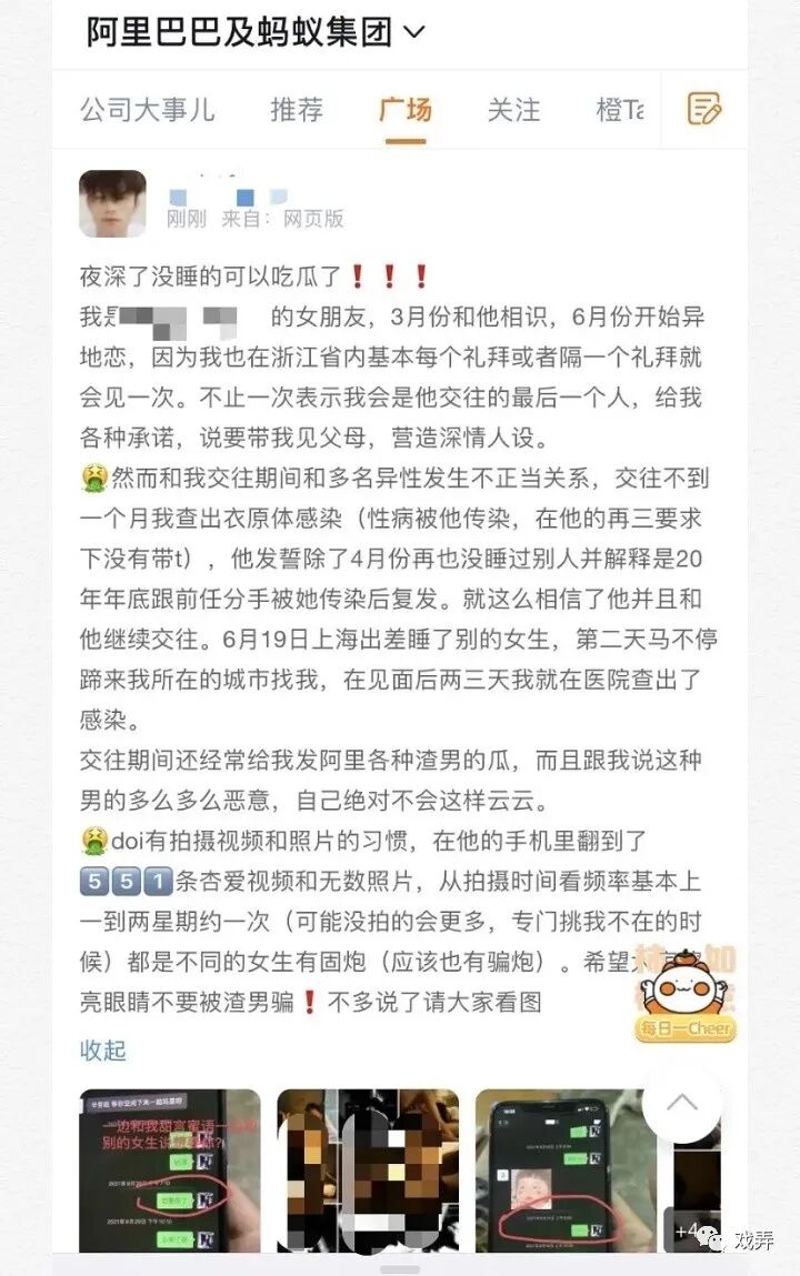 女网红事件男主和这次阿里P8事件女主一样,都是翻了对方手机,取得了关键资料,并予以曝光。
