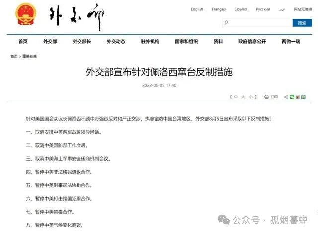 当初有人还嚷嚷着要把佩洛西的座机给打下来呢,太小儿科了,这叫什么反制?我们真把佩洛西给打了,美国国内多的是人弹冠相庆的。真正的反制就得像我们外交部干的这样,不动声色就把事给办了,完了让你一直难受到今天。