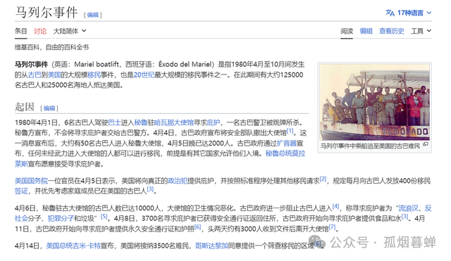 《60分钟》的这期节目,让我想起了美国和古巴历史上著名的“马列尔事件”。1980年4月1日,6名古巴人闯进秘鲁驻哈瓦那大使馆,以寻求政治避难为由赖着不走。秘鲁大使馆得到了来自美国的指示,因此拒绝将这些叛逃者交给古巴政府。