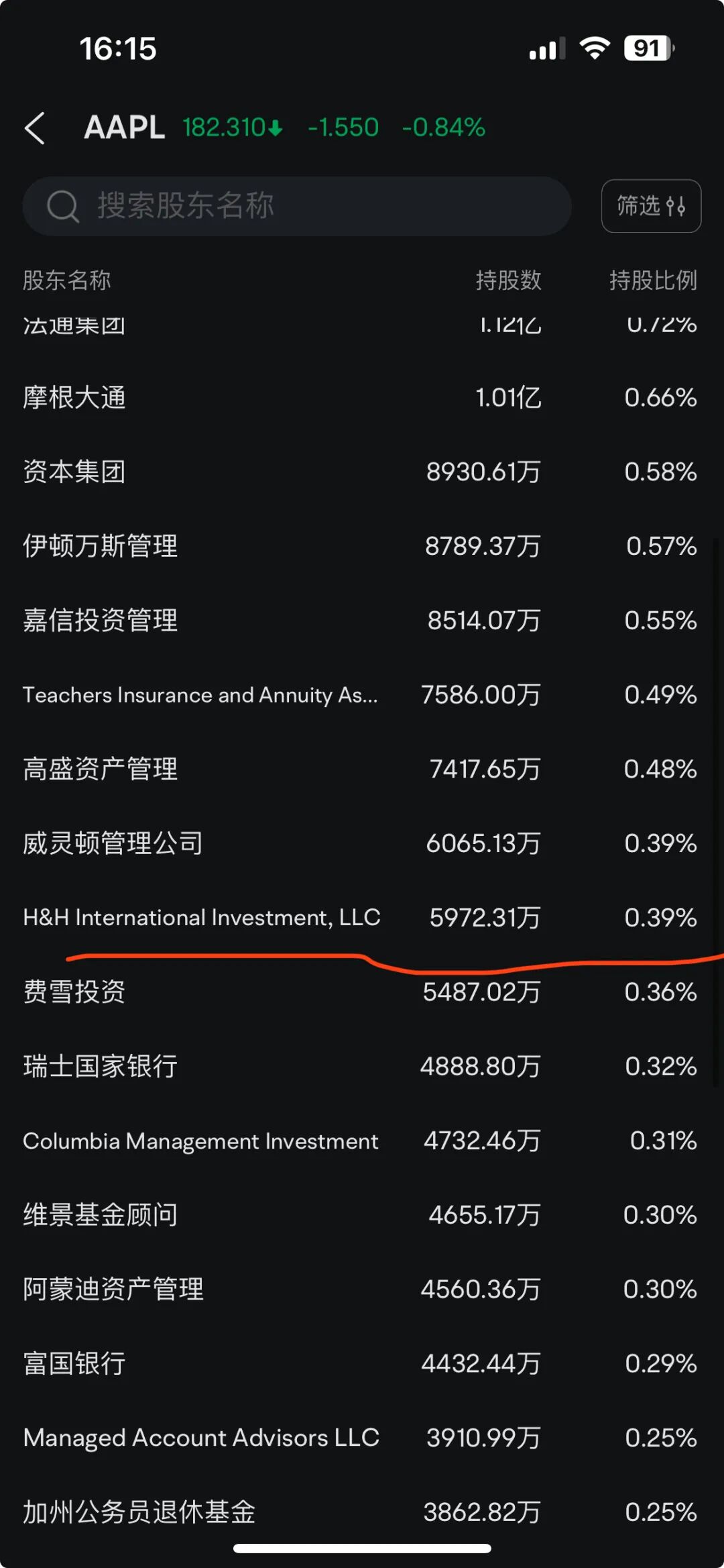 我们同样懒得去翻sec了,直接富图软件里,找苹果,找资料里股东列表,找到HH,然后点进去,就可以查看HH的资料了