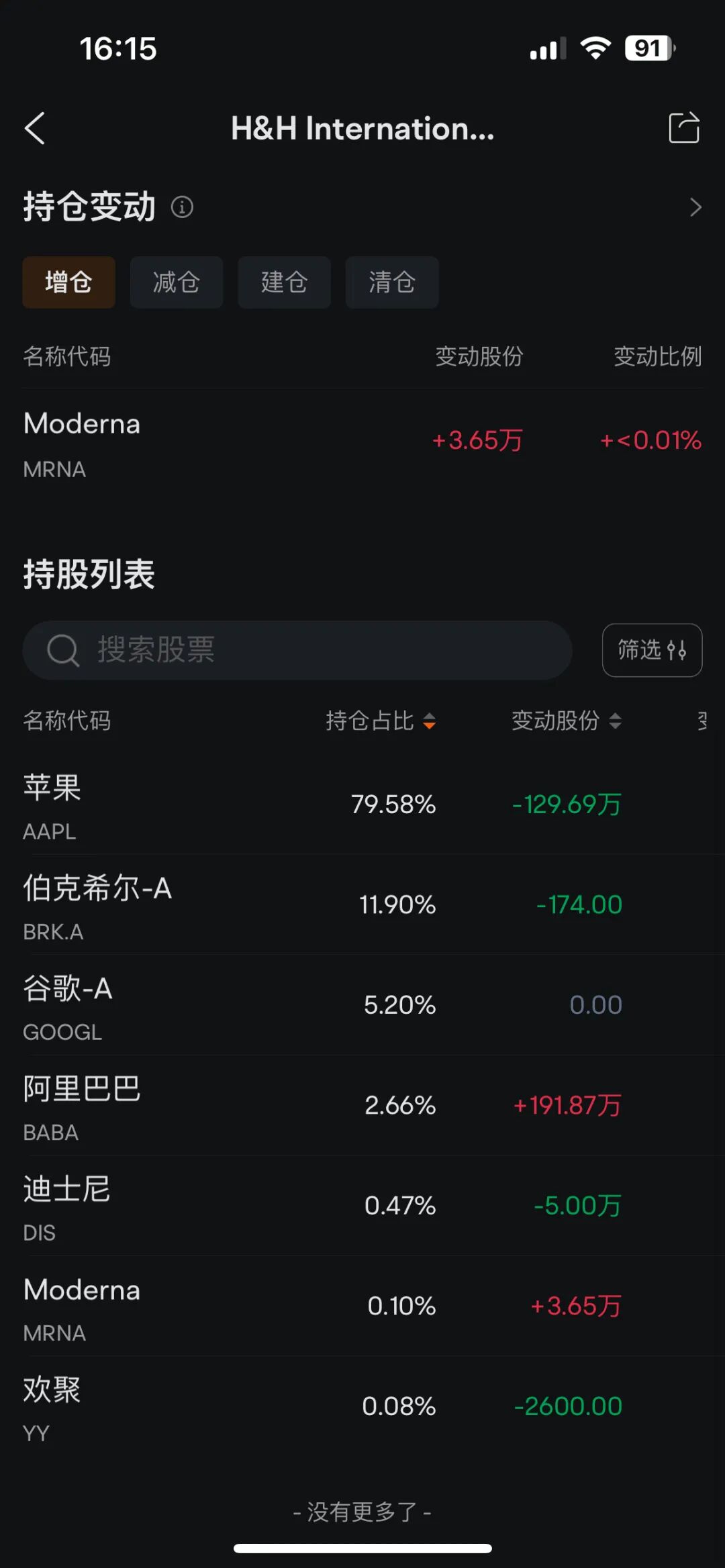 一个个机构的名字扫,最终被网友发现这个H&H的投资机构,然后看这个机构的13F文件披露的持仓。