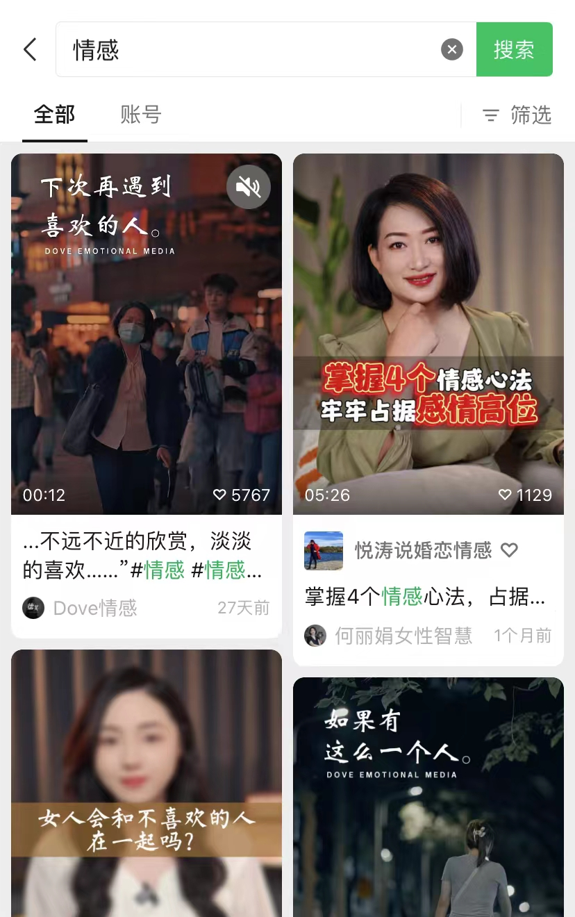 比如我要找一个情感类的对标账号,我们可以搜索这些关键词: