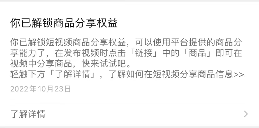 也就是说,如果你是开通了视频号小店的商家,那么你的视频号可以0粉丝就能拿到这个短视频带货权限了。