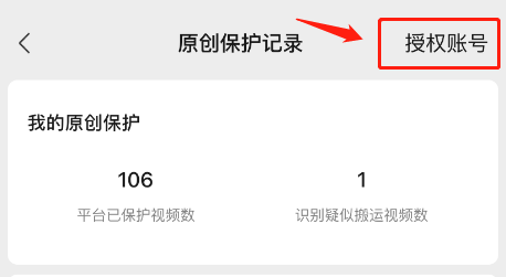 创作者中心 -> 创作者服务·更多 -> 原创保护记录 -> 右上角“授权账号”