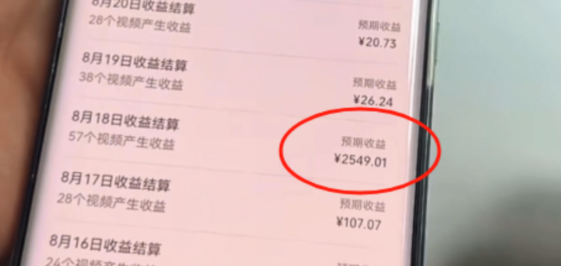 昨天看到一个博主,一条视频一天赚了2500多元。