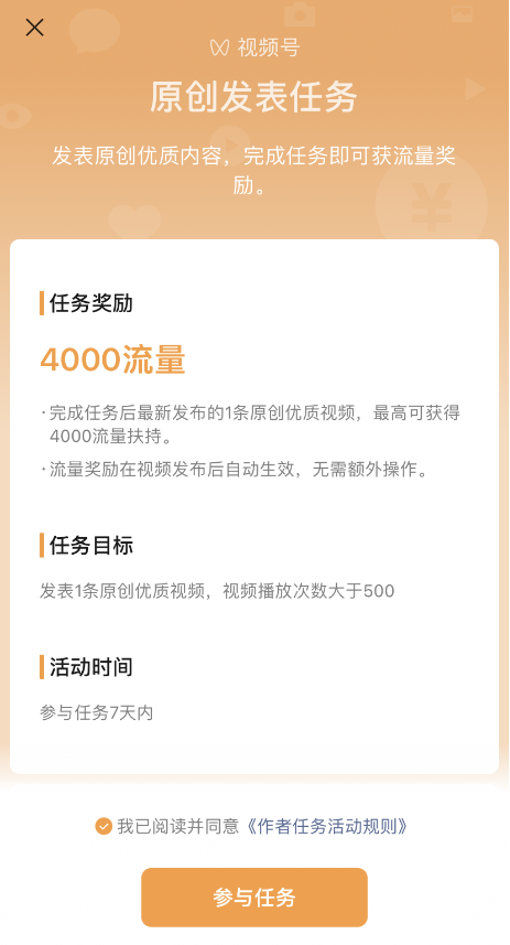 视频号后台有一个原创任务,完成任务后,能获得几千几万的免费流量,大家都知道吗?