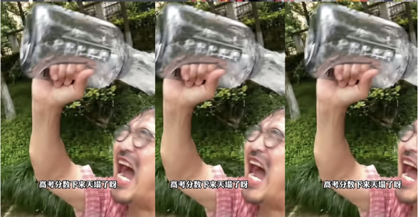 比如视频开头给头上浇一杯水,或者倒一盆水,然后再开始讲;