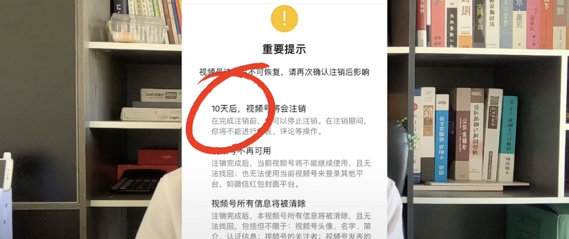 比如我注销花了10天的那个视频号,当时就是没有注意看,我以为是7天,然后外面显示的也是7天。