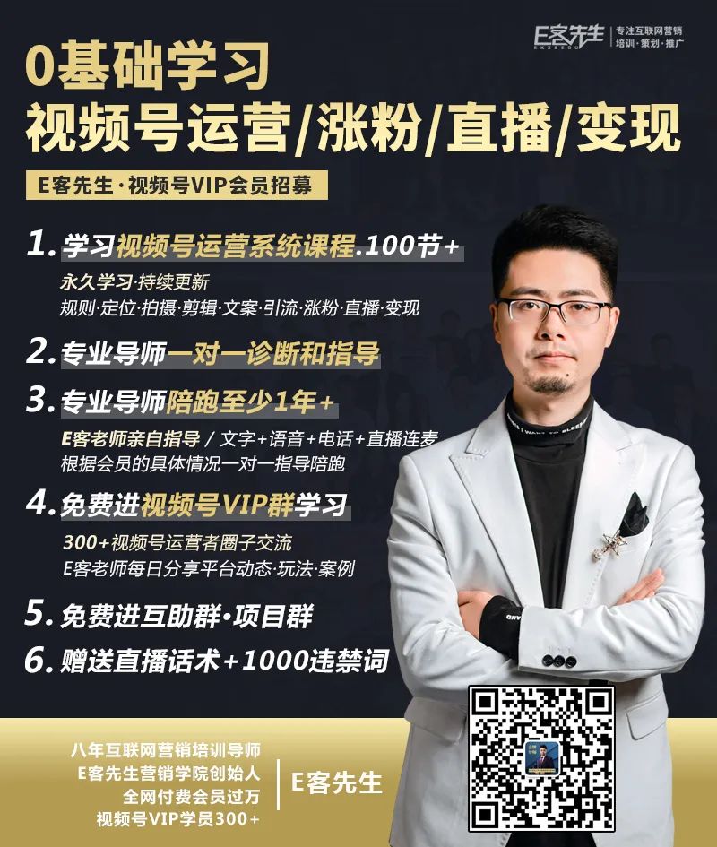 2023年《E客先生·视频号VIP会员》招募 | 0基础系统性学习视频号运营、涨粉和变现