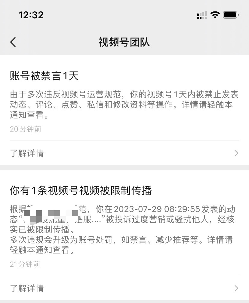 很不幸,昨天我的视频号被处罚了,禁言一天!