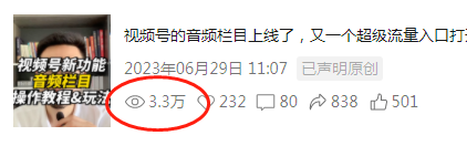 那你们猜上面那条视频,播放量有多少呢,3.3万。