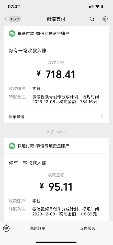 15、创作分成计划收益是每半个月结算一次,体现到账大概是一周左右的时间,直接到你的微信零钱里面了。