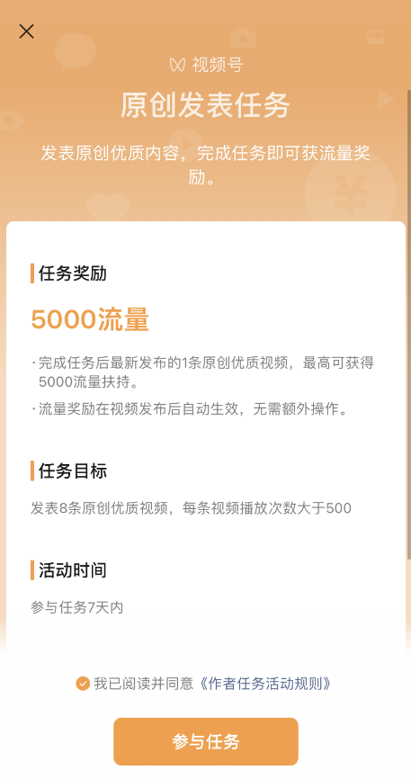 所以,如果你们视频号后台,创作者中心页面,有原创发表任务活动的话,E客老师是建议大家一定要去参加一下。