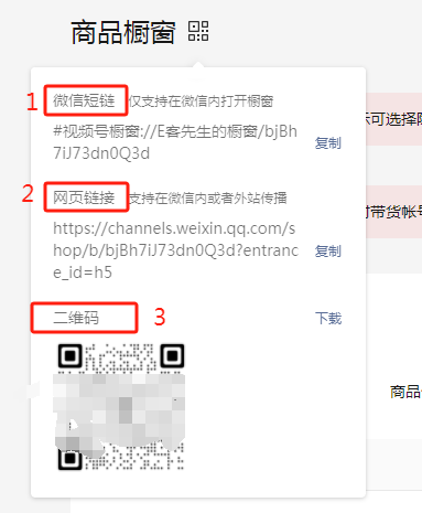 刚刚我发现商品橱窗,有单独的网页链接了,更加厉害的是,每一个商品橱窗都有一个独一无二的二维码。