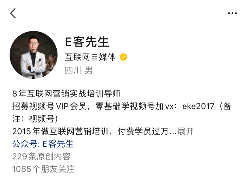 对,就是E客老师我自己的视频号了,哈哈哈!
