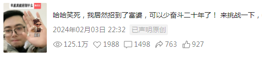 但是前两天发的那个嘿嘿小土豆的那个视频,我抓了一富婆的视频,流量很大,评论区高达1000多条,但是收益很低。