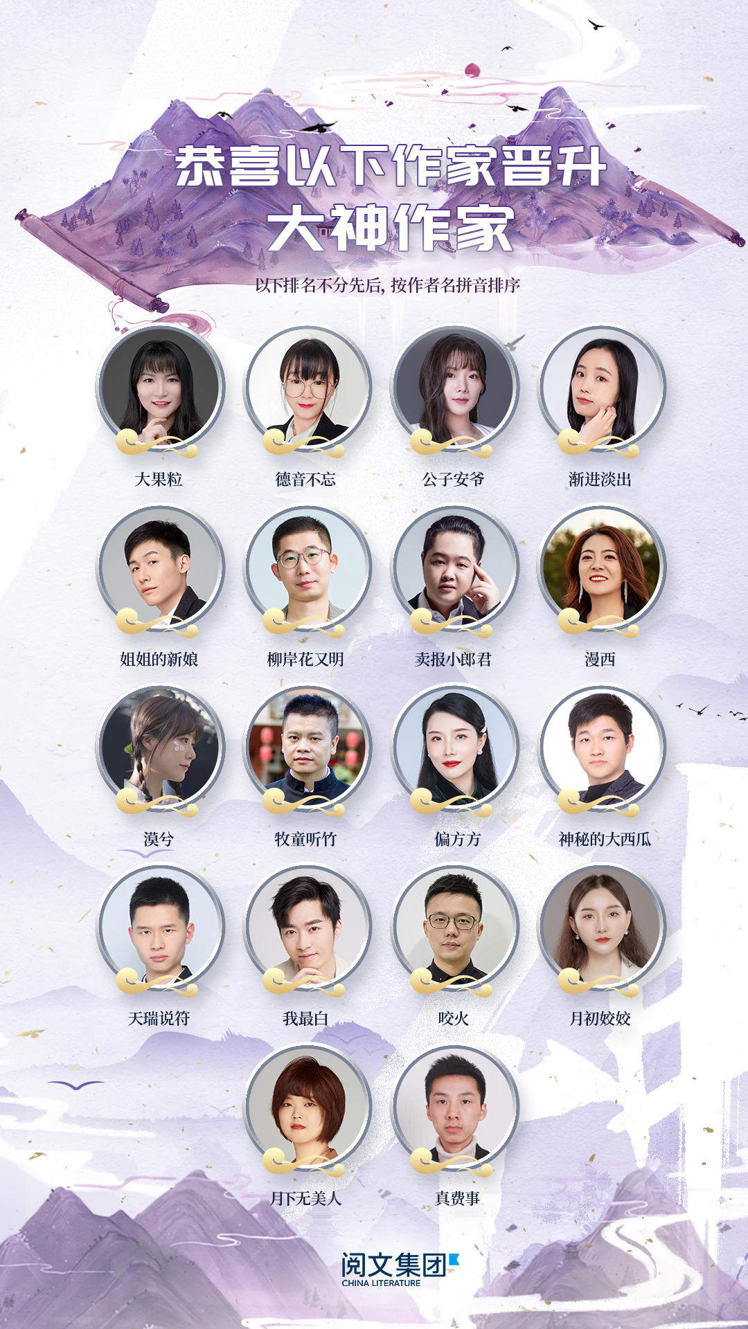 好了,以上就是本期的推荐,最后跟大家简单聊一下阅文今年新晋的白金作家和大神作家,先看图: