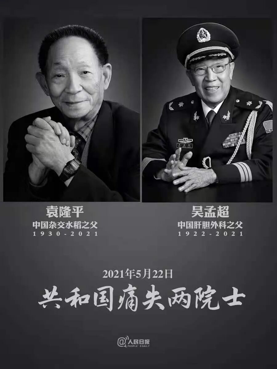 今天对于我们所有人来说应该都是一个比较沉痛的日子,“杂交水稻之父”袁隆平和“中国肝胆外科之父”吴孟超,都离开了我们。